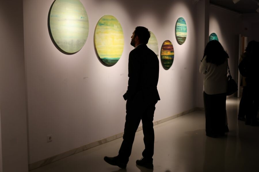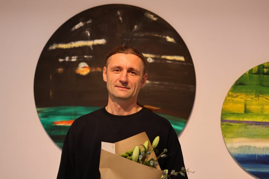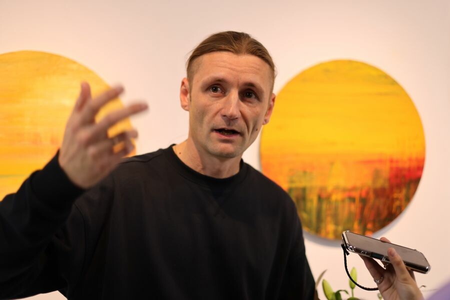 «В концепции этих картин много разных идей. Визуально я стремился создать такой пейзаж, в котором остается только самое главное – это отношение неба и земли. Есть линия горизонта где-то она размыта, где-то изображена четко. Эта серия, в которой живописные работы не только на кругах, но и на квадратах, но в круге мне понравилось то, что круг и линия горизонта интересно взаимодействуют, это пластическое противостояние.