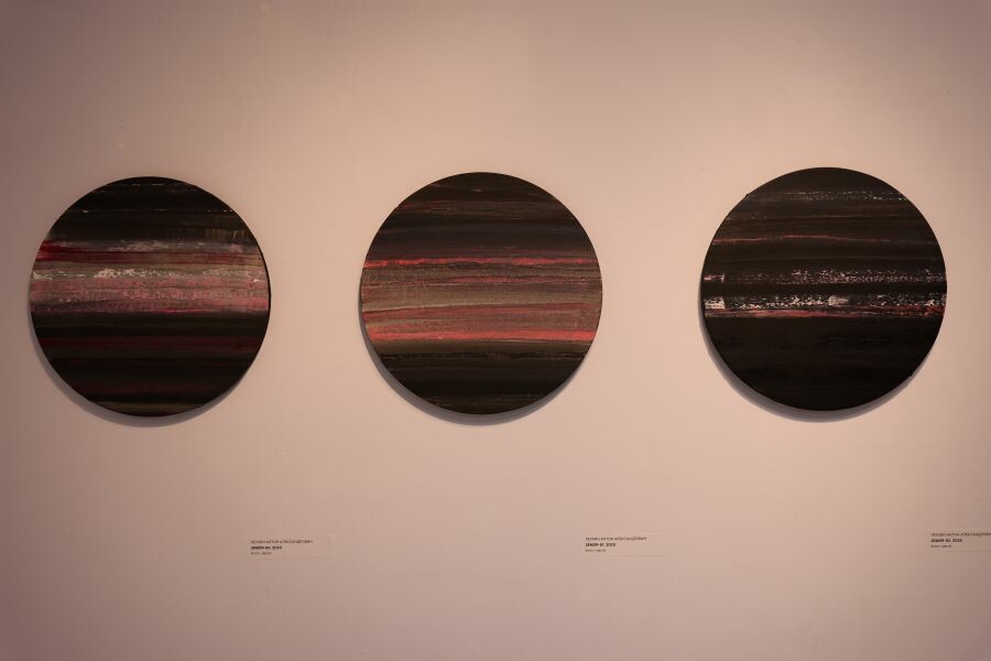 Эта серия работ про состояние природы, которая откликается человеку. Это пейзаж, где изображены небо и земля. Глядя на круги, кажется, будто мы смотрим на землю из иллюминатора, мне так сказал один военный моряк, то ли это космос, и мы можем посмотреть парад планет, то ли это взгляд на землю. Русский космизм предполагает рассматривать человека во вселенском масштабе и погружает человека в огромное пространство вечности», - рассказал нам художник Антон Леухин.