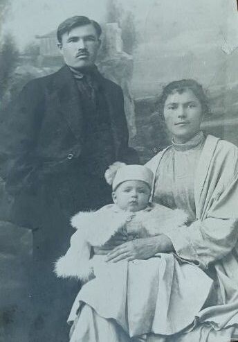 На фото: Амина ханум с мужем Шарифом Байчура и сыном Узбеком