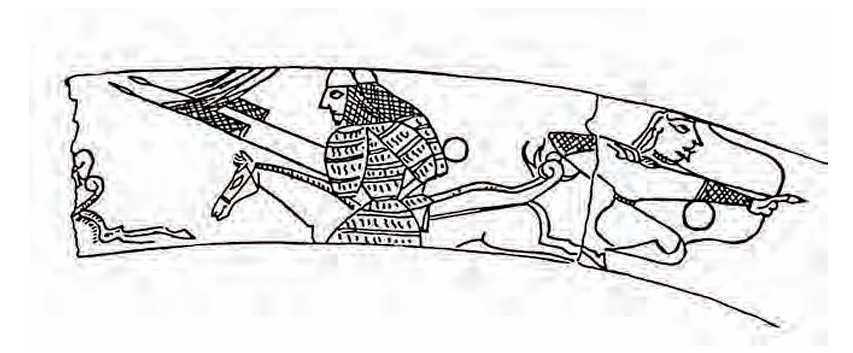 Воины и лучник. Рисунок на костяной пластине. Шиловский могильник. VIII в. Самарское Поволжье (из фондов СОИКМ)